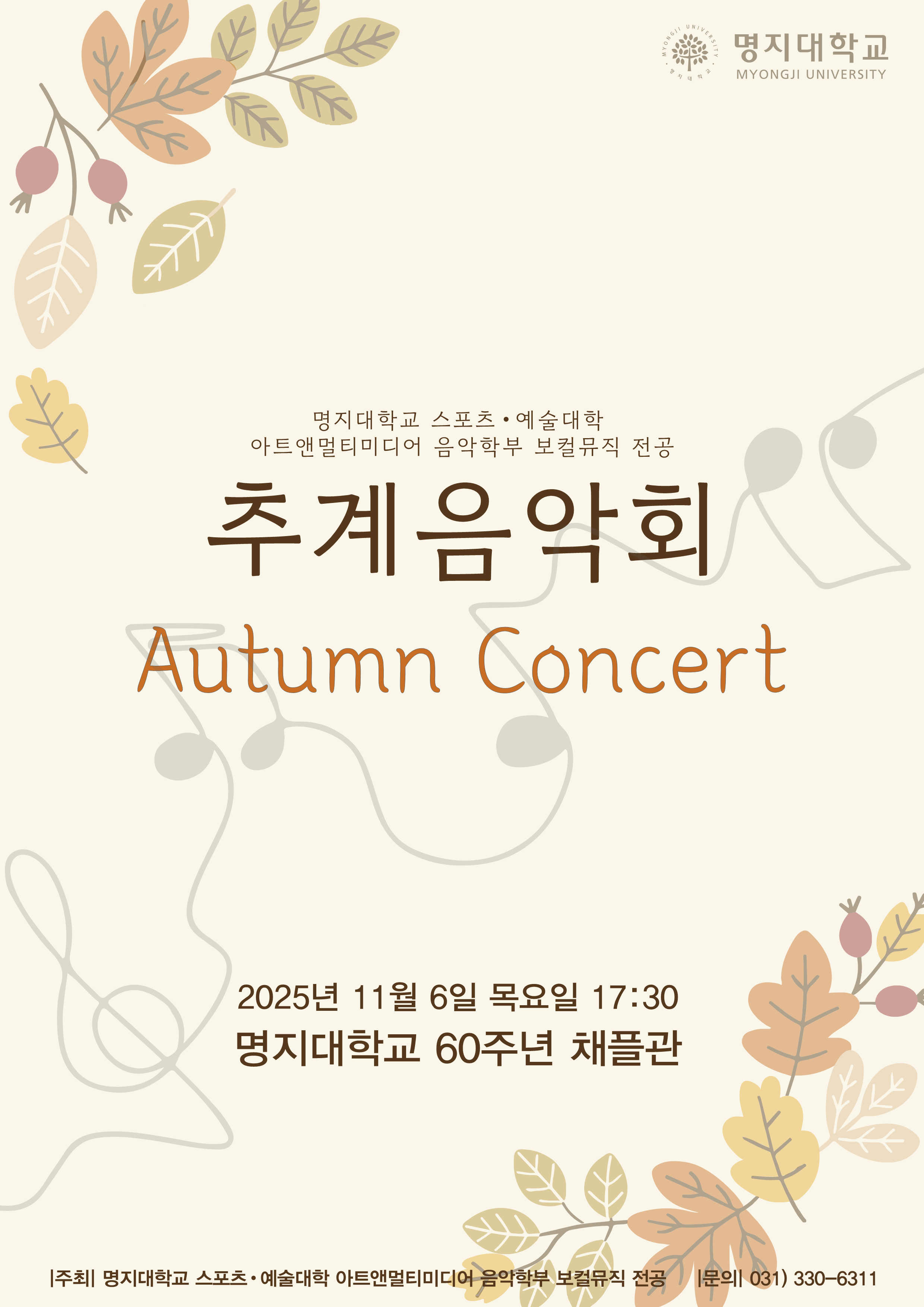 [스포츠·예술대학] 2025학년도 2학기 보컬뮤직전공 추계연주회 안내